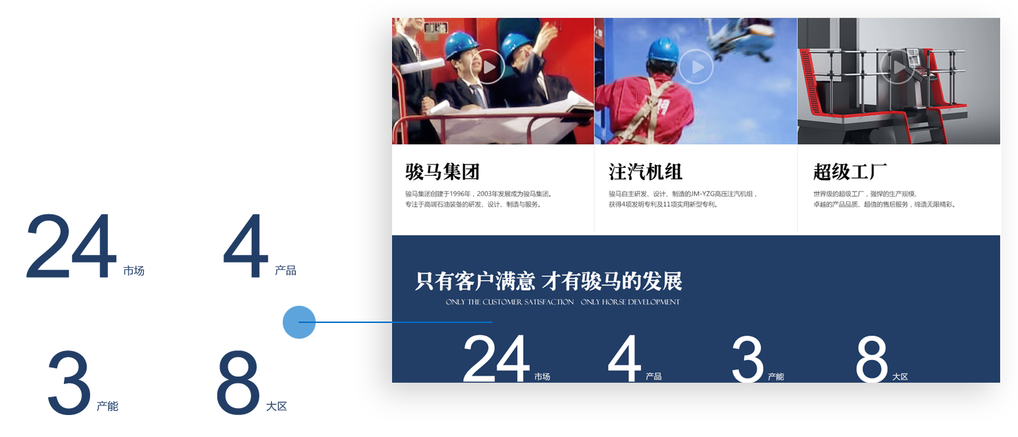 新鴻儒提煉駿馬集團(tuán)的優(yōu)勢(shì)數(shù)據(jù),以全新的交互方式進(jìn)行呈現(xiàn),突出表現(xiàn)駿馬集團(tuán)的企業(yè)實(shí)力和行業(yè)地位