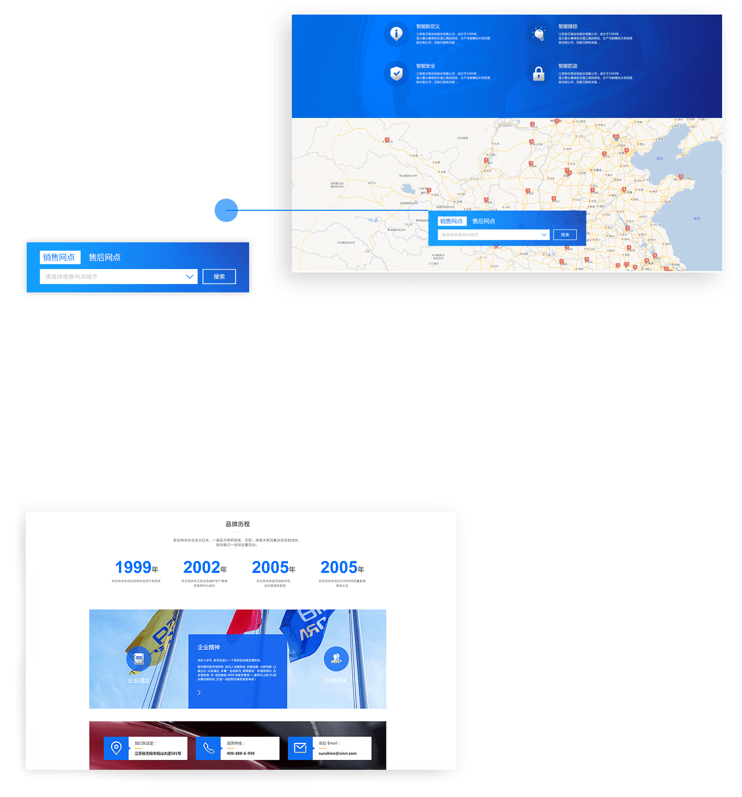 新日電動車官網(wǎng)調取百度地圖實時數(shù)據(jù),通過標簽定位的方式,實現(xiàn)銷售網(wǎng)點、售后網(wǎng)點的查詢,極大的方便了用戶,提升了服務質量和銷售渠道。