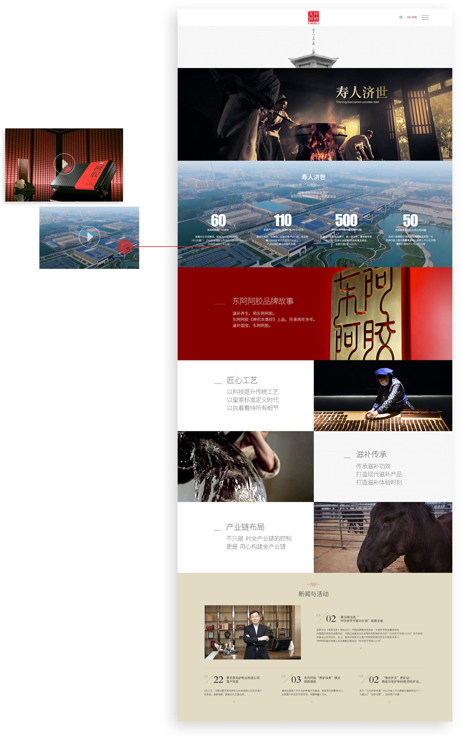 新官網(wǎng)大膽啟用具有沖擊力、戲劇性的創(chuàng)新設計手法,實現(xiàn)阿膠百年老