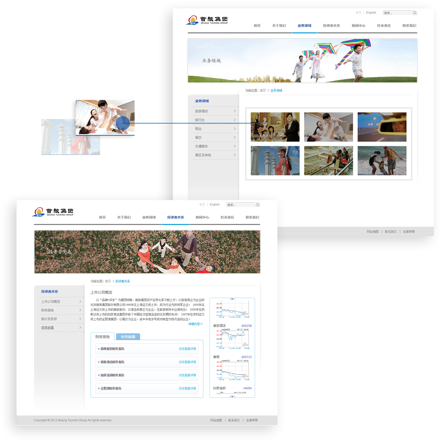 網(wǎng)站以“歷史與現(xiàn)代”相結(jié)合的視覺效果,表現(xiàn)首旅集團作為知名的旅游服務(wù)企業(yè)的品牌形象。 色彩范圍