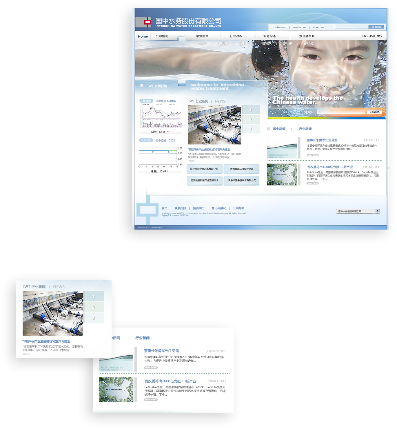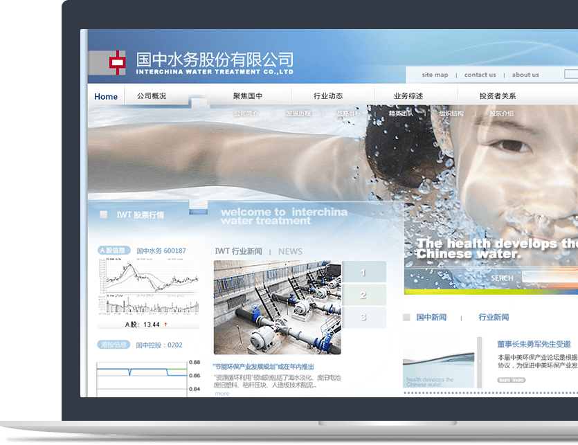 新鴻儒持續(xù)為國中控股、國中水務(wù)打造官方網(wǎng)站,在兼顧同一體系內(nèi)企業(yè)的視覺統(tǒng)一性的基礎(chǔ)上,通過不 同的表達(dá)方式塑造個(gè)性化的品牌官網(wǎng)
