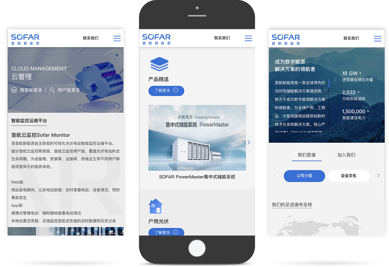 首航云監(jiān)控Sofar Monitor 是首航新能源自主研發(fā)的可視化光伏電站智能監(jiān)控運(yùn)維平臺(tái)。 細(xì)分首航云監(jiān)控商家版,首航云監(jiān)控用戶(hù)版,覆蓋光伏電站的全生命周期,為設(shè)備商、安裝商、運(yùn)維商、終端業(yè)主等不同用戶(hù)群提供差異化的服務(wù)體驗(yàn)。