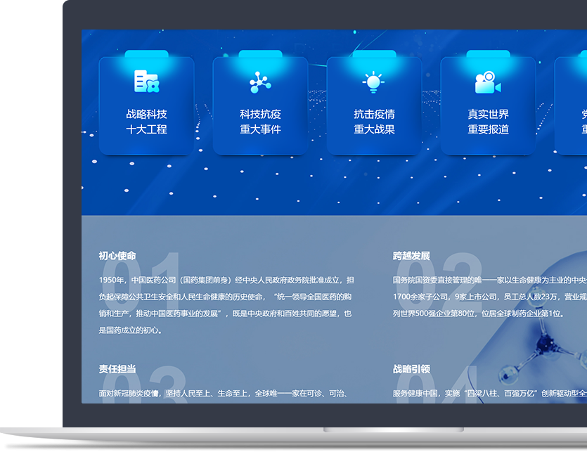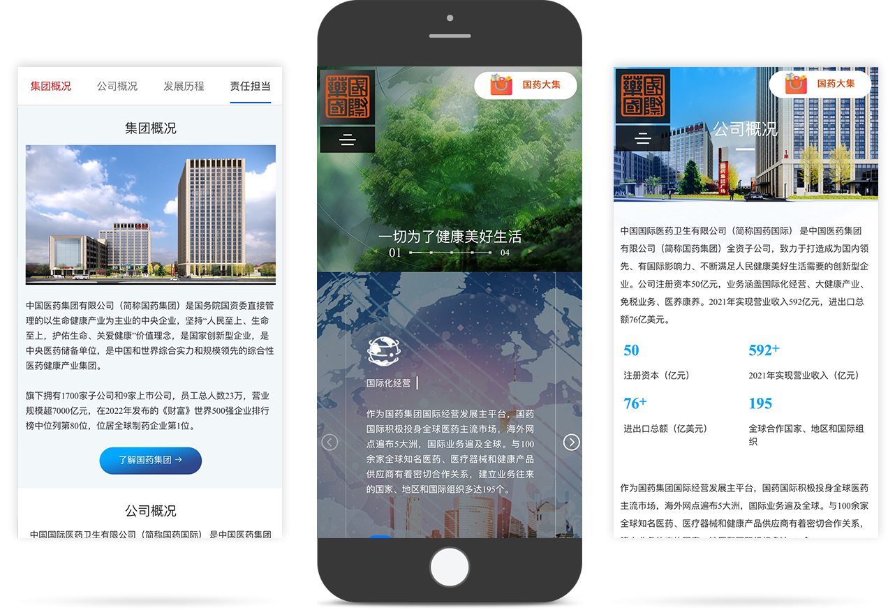 中國(guó)國(guó)際醫(yī)藥衛(wèi)生有限公司(簡(jiǎn)稱國(guó)藥國(guó)際)是中國(guó)醫(yī)藥集團(tuán)有限公司(簡(jiǎn)稱國(guó)藥集團(tuán))全資子公司, 致力于打造成為國(guó)內(nèi)領(lǐng)先、有國(guó)際影響力、不斷滿足人民健康美好生活需要的創(chuàng)新型企業(yè)。