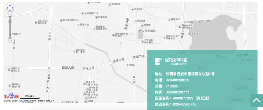 官網(wǎng)首頁(yè)采用多屏的視察滾動(dòng)的方式呈現(xiàn)。通過(guò)鼠標(biāo)滑動(dòng),每一屏都以不同的主題、形象和技術(shù)呈現(xiàn),給訪問(wèn)者帶來(lái)驚喜。其中,包括對(duì)【愛(ài)上歐亞,愛(ài)上未來(lái)的你】等主題價(jià)值的提煉;以微視頻為背景,以數(shù)字化的方式呈現(xiàn)歐亞學(xué)院的實(shí)力和優(yōu)勢(shì);以360度看校園的智能交互,實(shí)時(shí)展現(xiàn)校園風(fēng)貌;對(duì)接地圖API接口,便于學(xué)生/家長(zhǎng)及時(shí)找到學(xué)校位置。