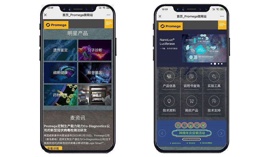 同時,為滿足更多用戶的需求,網(wǎng)站采用響應式網(wǎng)頁設計,Promega微官網(wǎng)可自動適應PC端、智能型手機、平板等不同分辨率的瀏覽,滿足用戶即使脫離微信端的情況下,也能給用戶提供最佳瀏覽體驗。